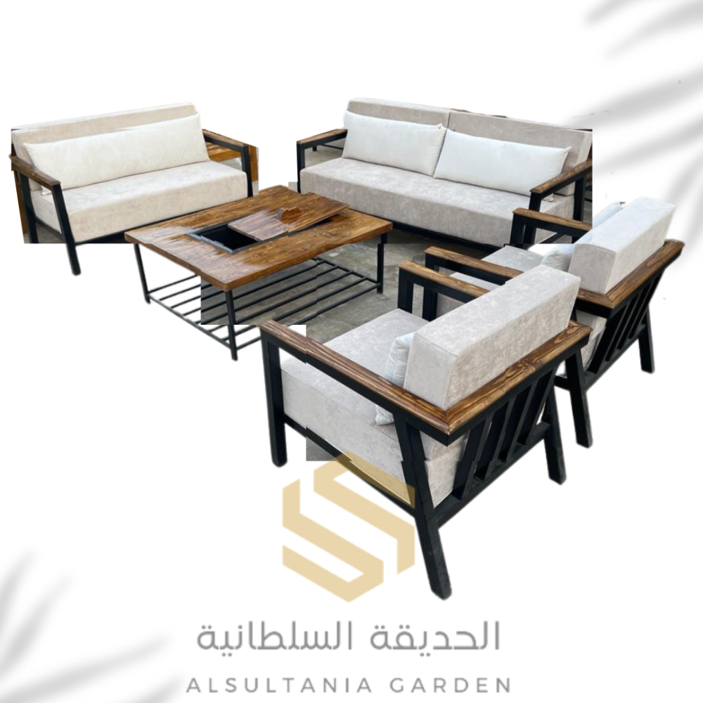 جلسة خارجية 7 مقاعد مصنوعة من الحديد والخشب السويدي