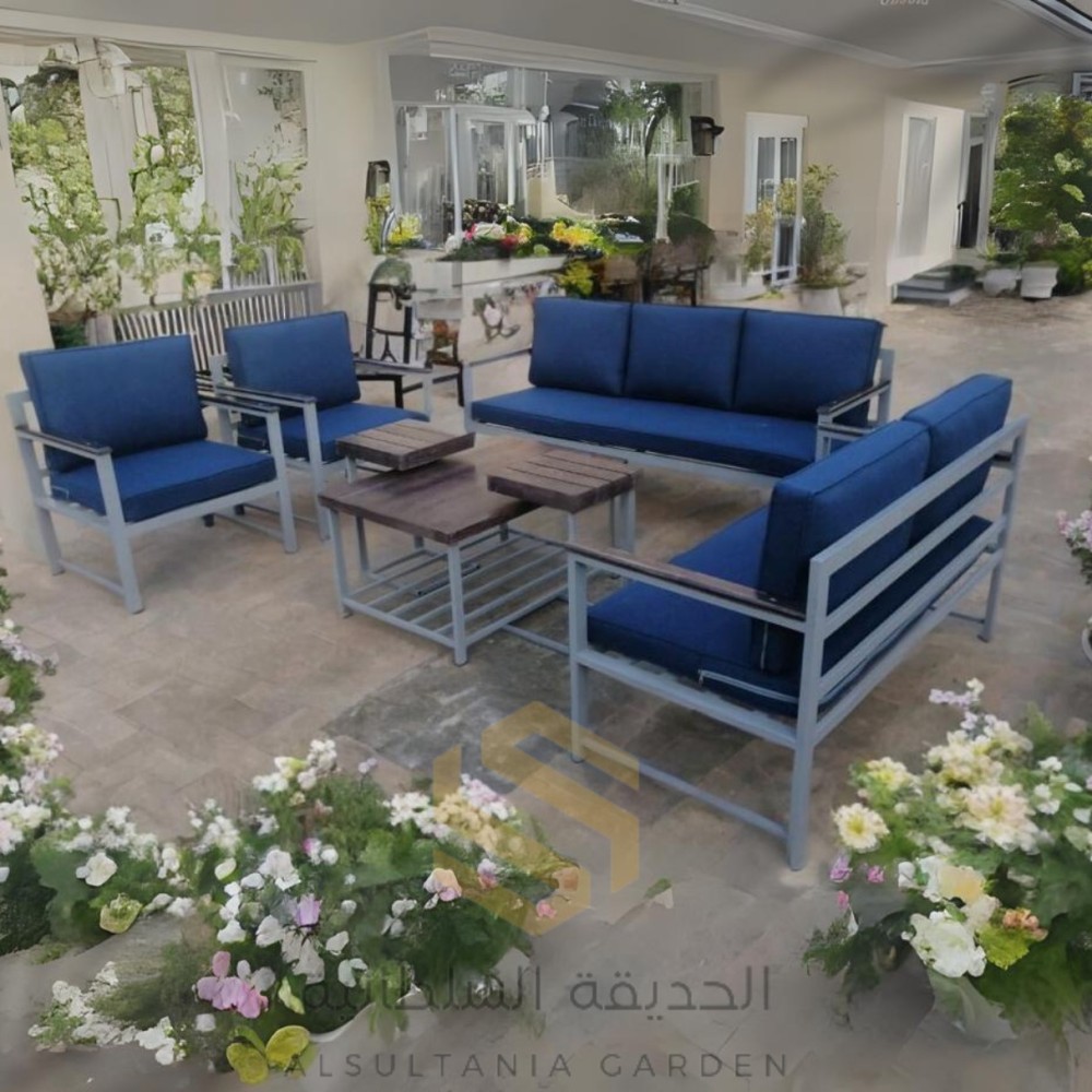 جلسة خارجيه 7 مقاعد مصنوعة من الحديد والخشب السويدي