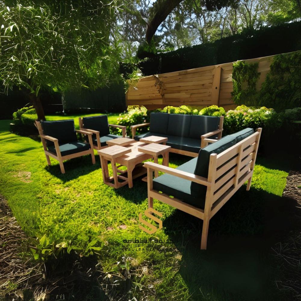 جلسة خارجية 7 مقاعد مصنوعة من الخشب الطبيعي السويدي