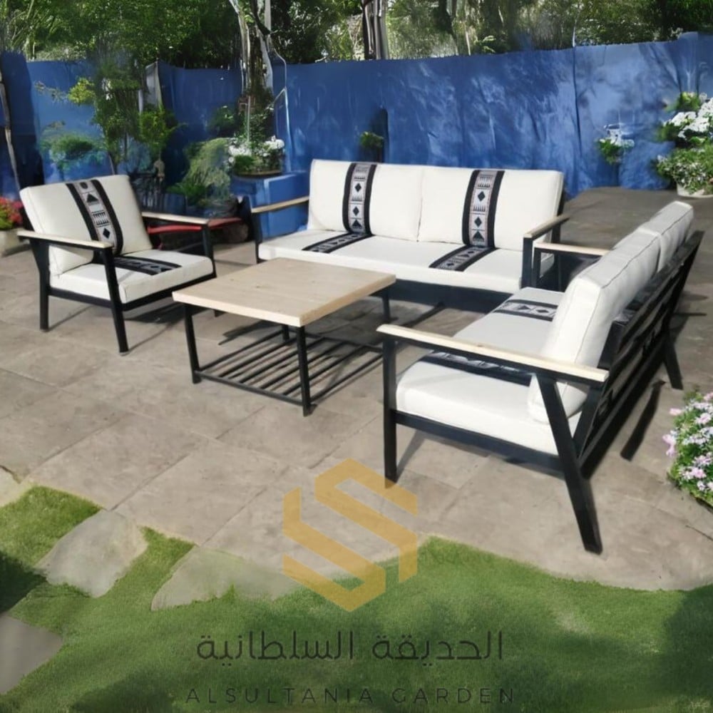 جلسة خارجيه 5 مقاعد مصنوعة من الحديد والخشب السويدي