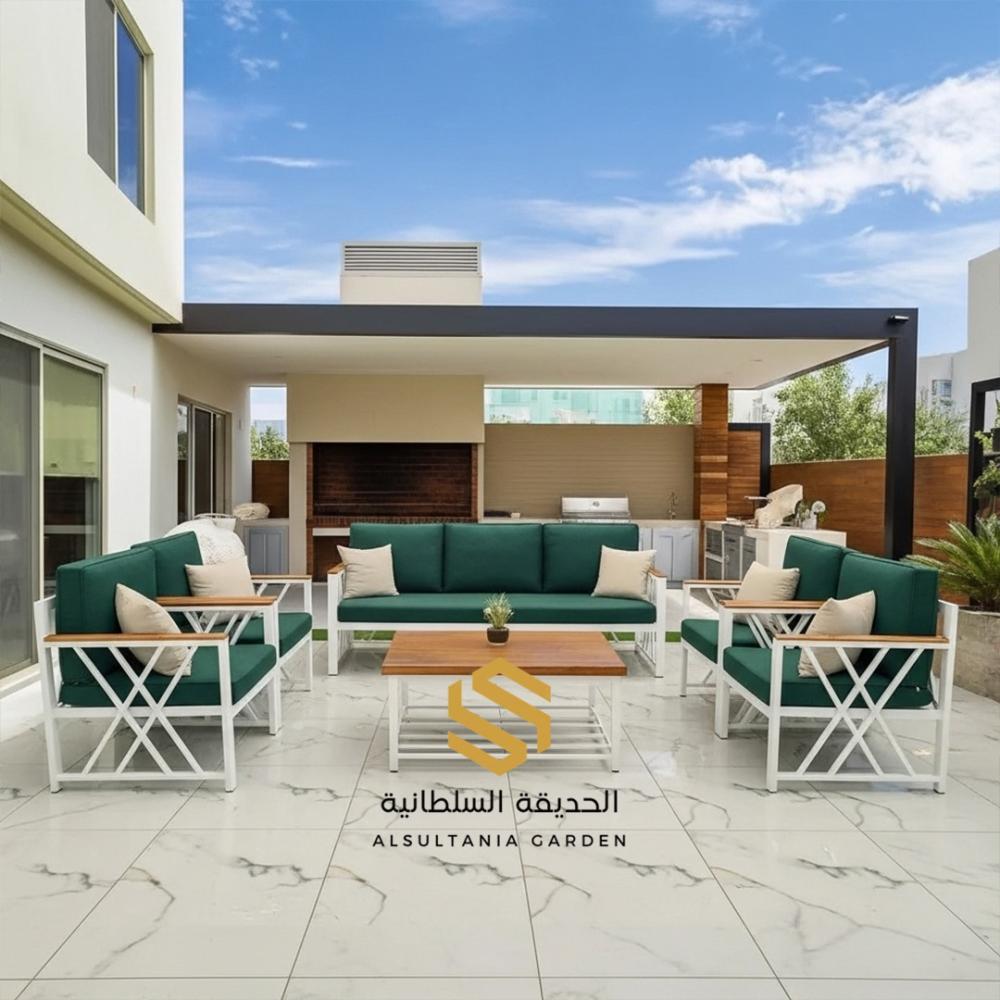 جلسة خارجيه 7 مقاعد مصنوعة من الحديد والخشب السويدي