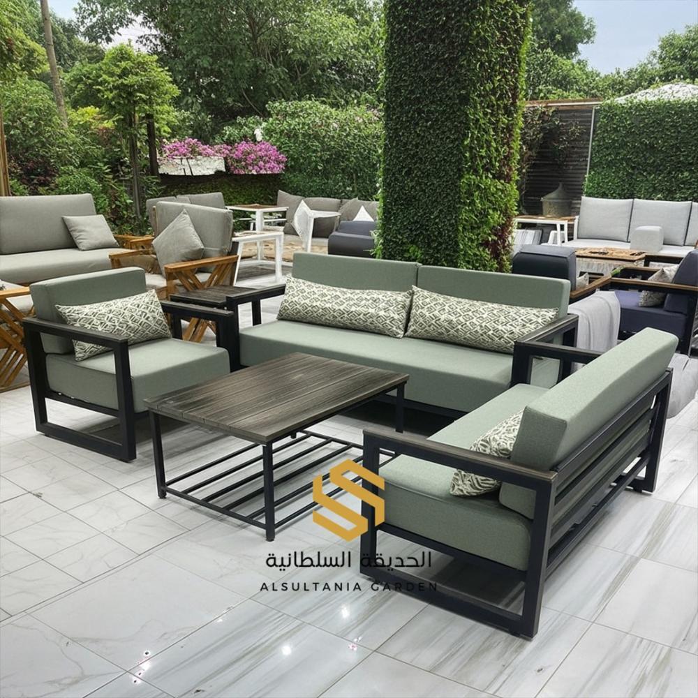 جلسة خارجيه 7 مقاعد مصنوعة من الحديد والخشب السويدي