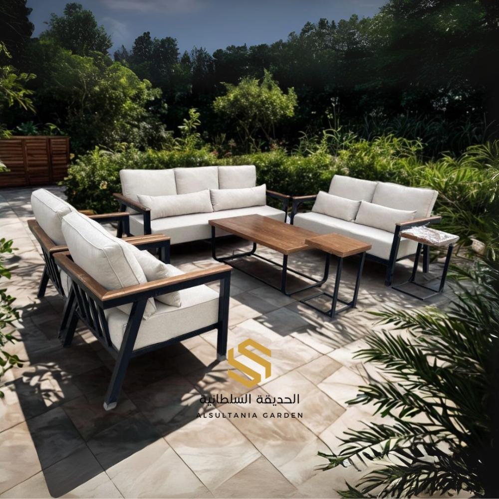 جلسة خارجيه 7 مقاعد مصنوعة من الحديد والخشب السويدي