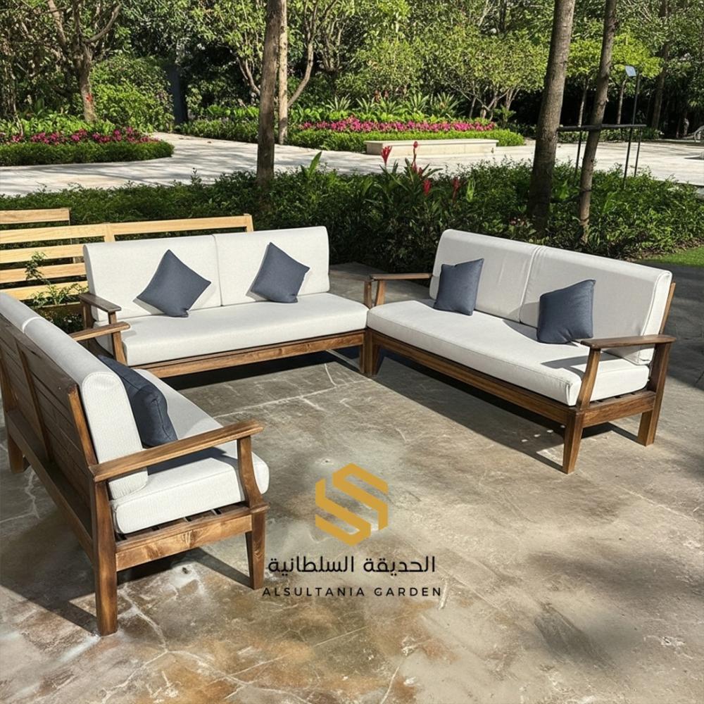 جلسة خارجية ٩ مقاعد مصنوعة من الخشب الطبيعي السويدي