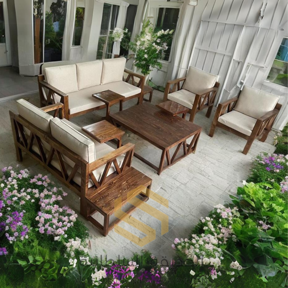 جلسة خارجية 7 مقاعد مصنوعة من الخشب الطبيعي السويدي