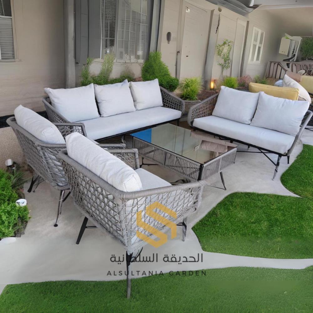 جلسة خارجية 7 مقاعد حديد مع حبال