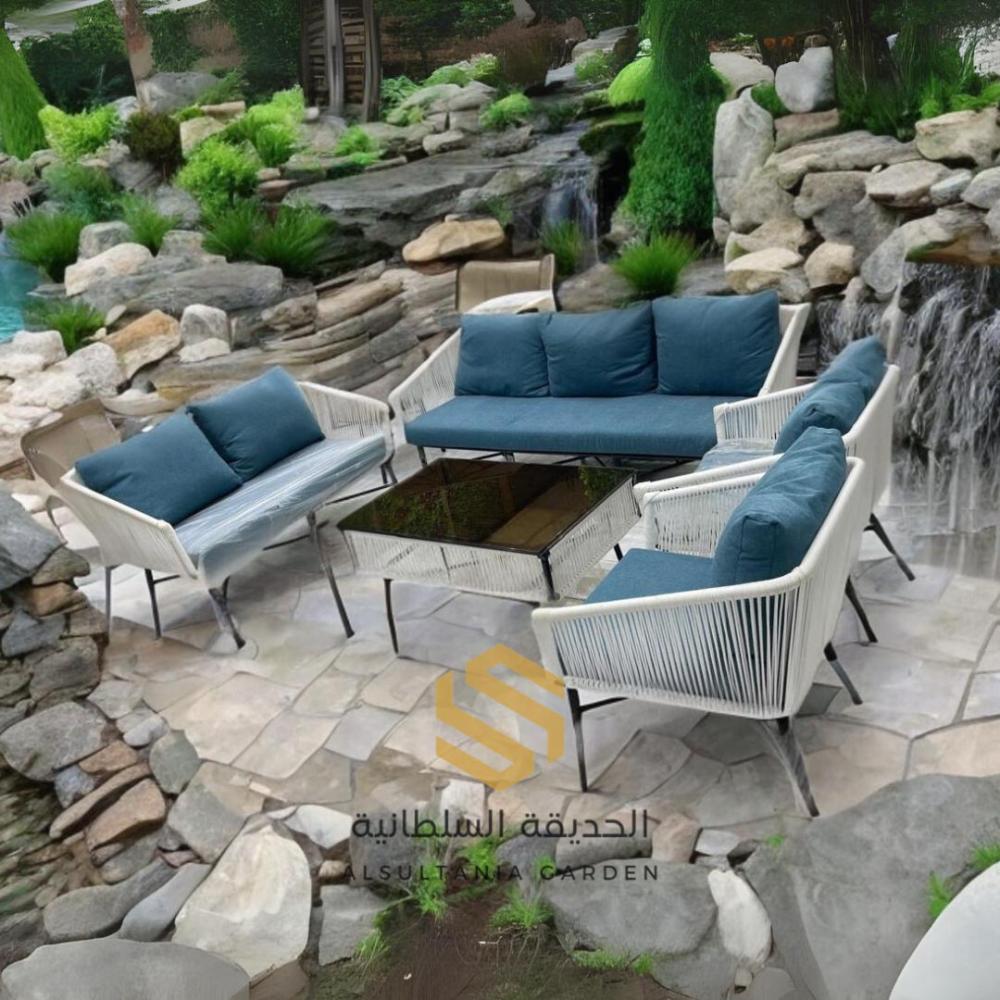 جلسة خارجية 7 مقاعد حديد مع حبال